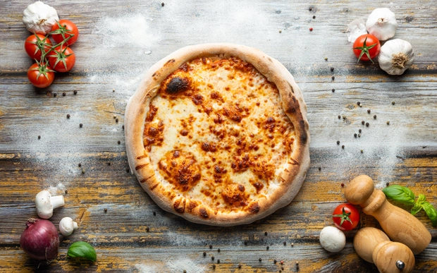 smetanový základ, italská mozzarella, vyzrálá gorgonzola, sametové kopečky sýru ricotta, to vše posypané sýrem grana padano