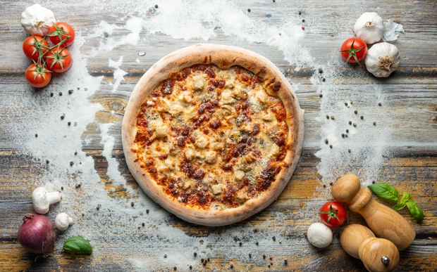 smetanový základ, italská mozzarella, vyzrálá gorgonzola, sametové kopečky sýru ricotta, to vše posypané sýrem grana padano